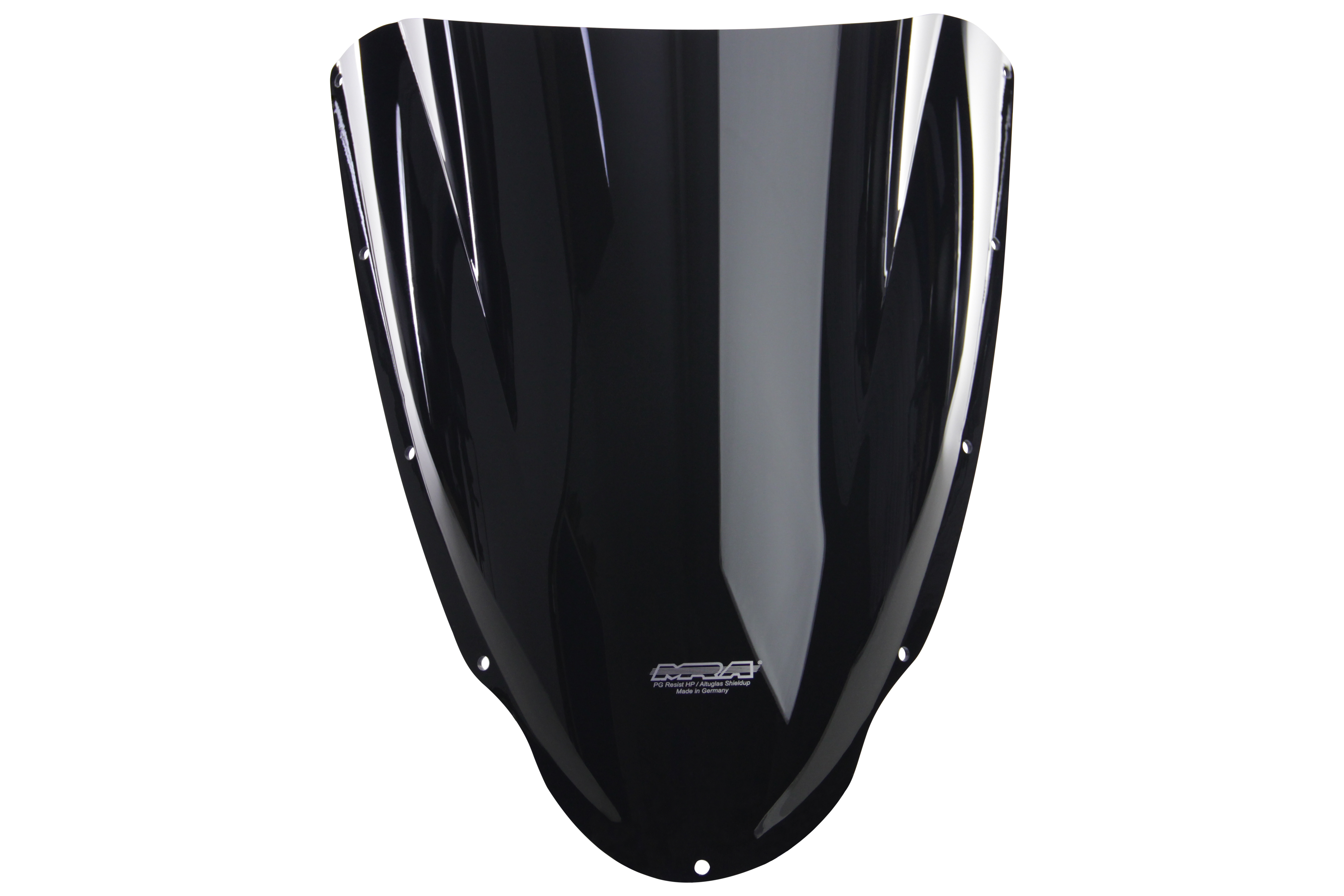 This type of screen was originally developed by MRA for competition and is used today by many high-level racers including works MotoGP teams. The lower part of the Racing Screen corresponds to the original profile, but with a bubble-shaped extension in the centre to improve aerodynamics and deflect wind pressure away from your helmet. Available in all MRA-colors.