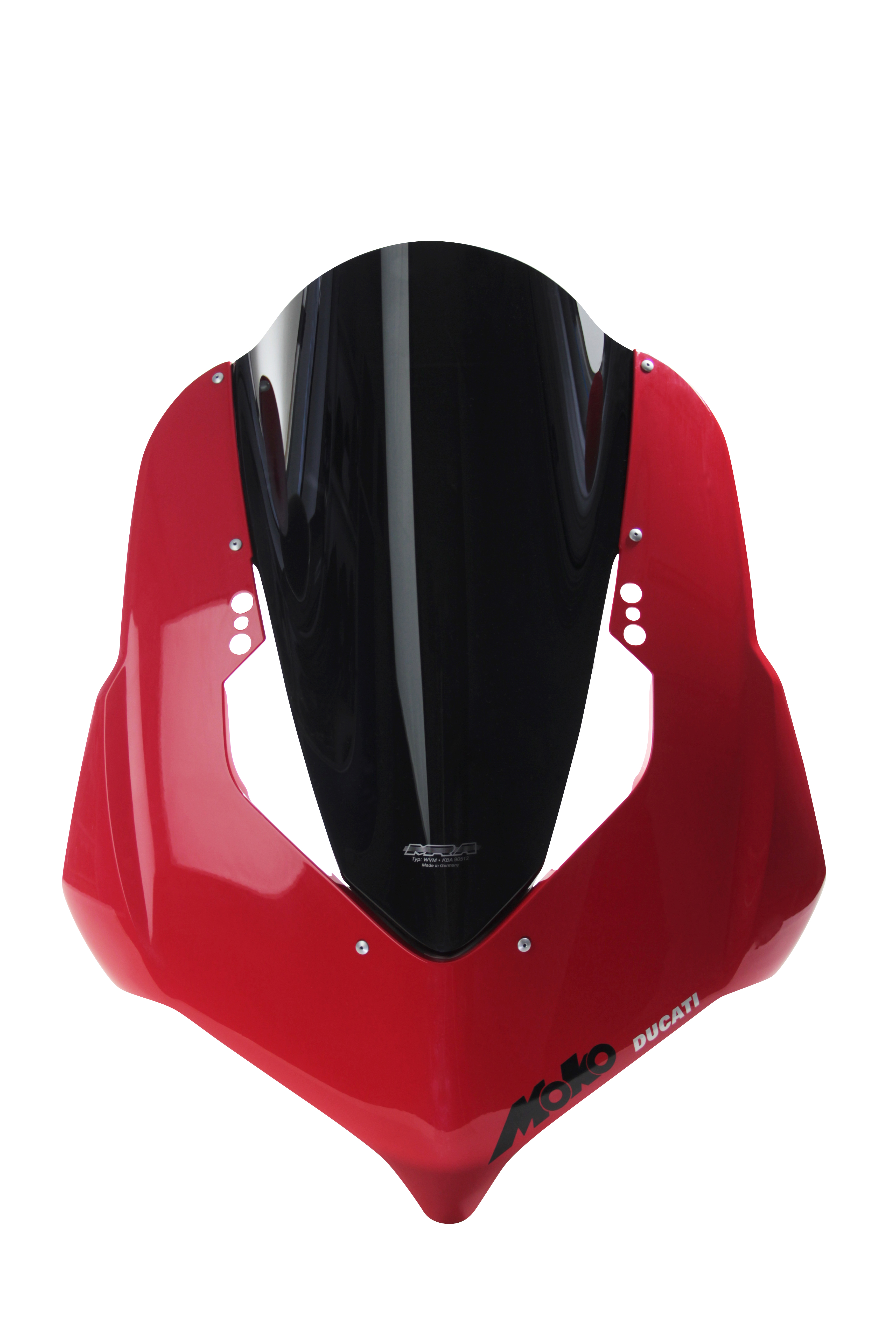 This type of screen was originally developed by MRA for competition and is used today by many high-level racers including works MotoGP teams. The lower part of the Racing Screen corresponds to the original profile, but with a bubble-shaped extension in the centre to improve aerodynamics and deflect wind pressure away from your helmet. Available in all MRA-colors.
