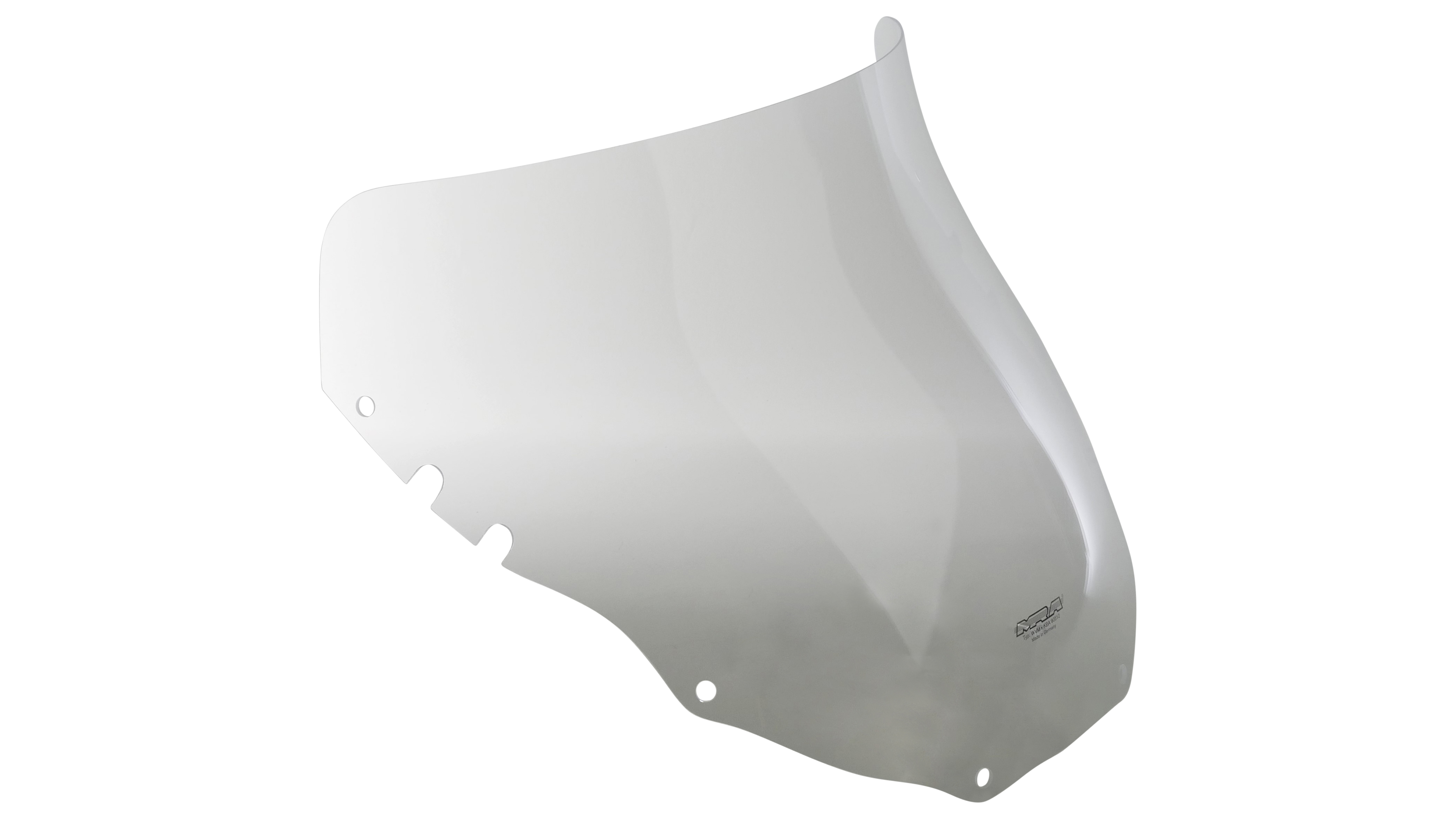 The Touring Screen has a similar shaped base as your bike´s standard screen but, typically, is longer and taller. Its extra length and height is created by an upwardly sloping rear section over its entire width, designed to deflect wind pressure away from the rider, ensuring an easy, relaxing ride - even on long trips. For some models with very upright screens as standard, to avoid creating unnecessary turbulence, the Touring Screen is just simply extended without any further upwards angle. Available in all MRA-colors.